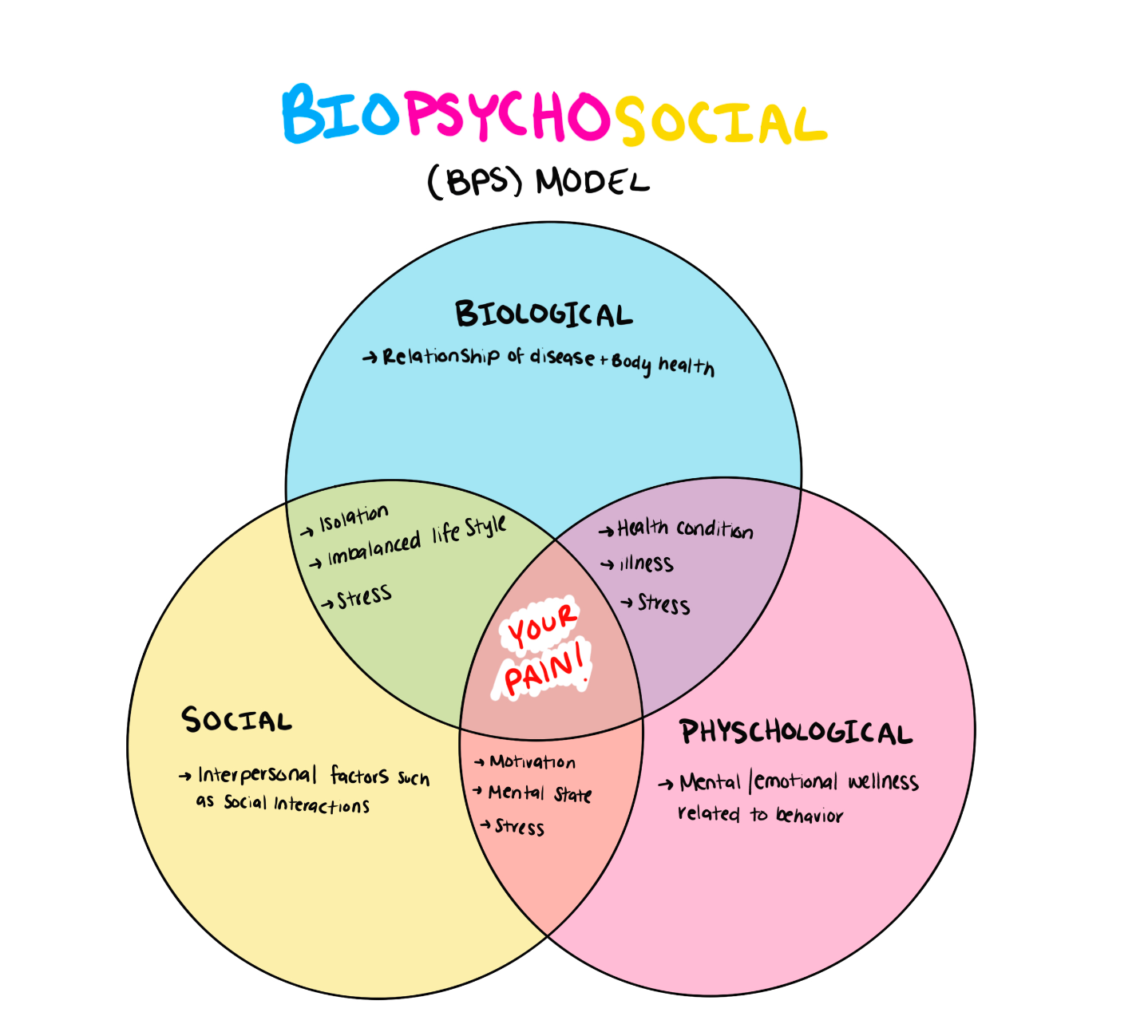 New studies have shown that the prevalence of chronic pain has significantly increased for all US demographics (especially for those of lower socioeconomic status) and, with it, the use and prescription of opioids. Medication is a powerful and important tool for pain management, and for some people, it is the key to resolving pain. However, it does not work for everyone, and excessive medication use can lead to addiction and further harm. The number of chronic pain sufferers is increasing in part because of the narrow approaches our healthcare system provides for pain management and the emotional exhaustion that comes with years of ineffective treatment. Recent studies have found that treating pain through a biopsychosocial approach (I know that’s a big word; don’t worry, we will break it down!) can be the key to pain management, but to understand how it works, you must first understand pain.