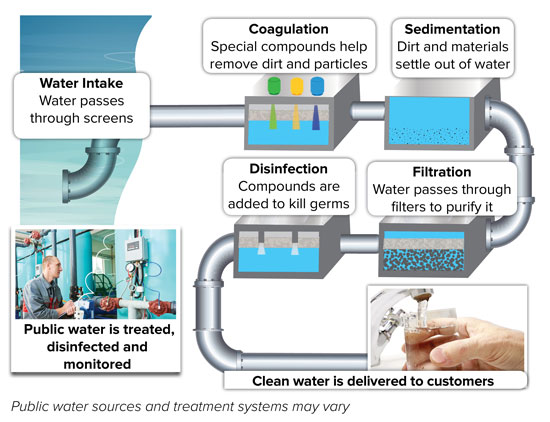 How is water purified? Here’s a helpful diagram of the general steps from water source to your faucet.