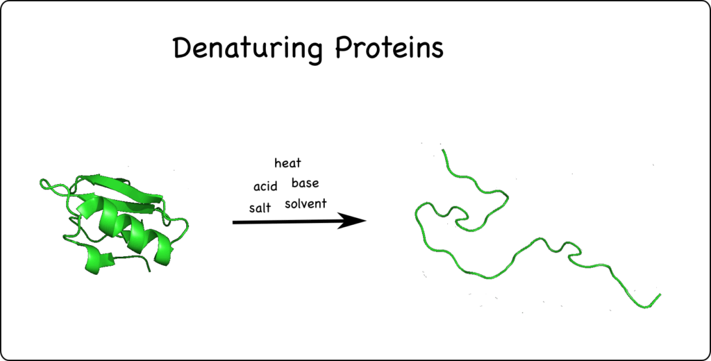 In the last post, I talked about how polar chemicals in water solution dissolve by interacting with water molecules and that some of these release H+ into the water, making the H+ concentration higher, which is the definition of acidic. The more acidic, the more reactive. Those H+ are super reactive and can interfere with the shape of proteins or even break them apart, which means they can no longer function. The term for this protein damage is denaturation. Proteins in our skin’s epidermis that are exposed to acid leads to acid burns as the proteins are destroyed. Or, the tender membranes of our nasal passages if we breathe in acid vapors get damaged as the proteins are destroyed. All of our body parts are what they are and do what they do courtesy of the many types of proteins they are made up of. Acids are bad news for most proteins. It’s bad for other body chemicals, too.