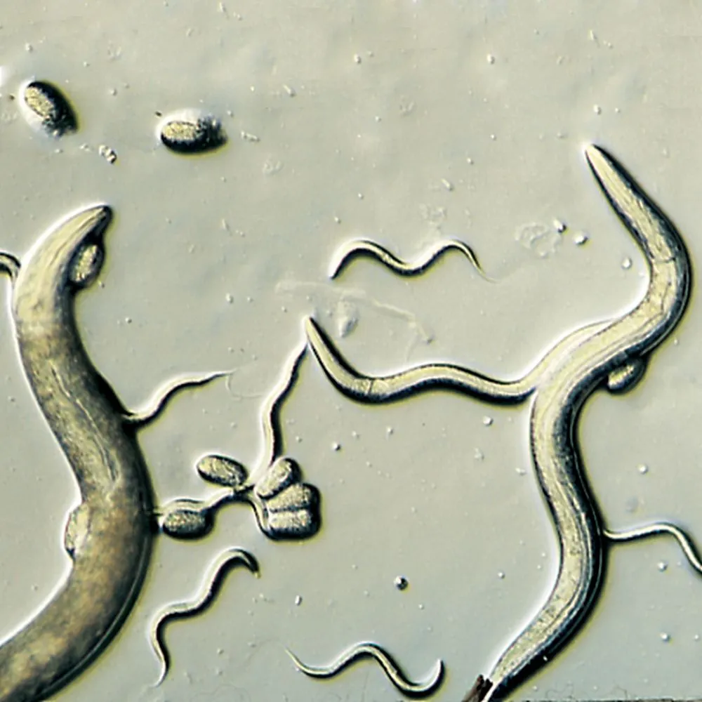 A cool thing about C. elegans is that they grow from hatched egg to egg-laying adult in just 4 days and scientists know a TON about their development, genetics, nervous system and behaviors. They are referred to as a MODEL ORGANISM. We share, believe it or not, almost half of our genes with this tiny critter and so we can study how their genes and development are affected by chemicals and gain insights into how bigger organisms, like our pets or even us, might also be affected.