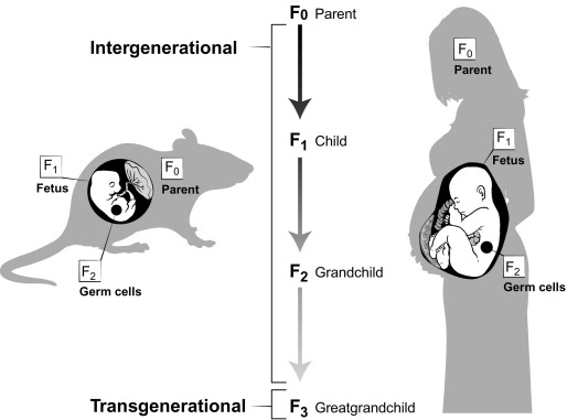 Some intergenerational effects arise when the parent is exposed to pesticides and their germline is harmed. That is, their sperm or eggs. If those cells have pesticide damage to genes, for example, that are involved in development, then the embryos that come from those sperm and eggs will develop under the regulation of genes that have been affected by the pesticides that the parent was exposed to. That parent could have been exposed as an infant, or teenager, or adult.