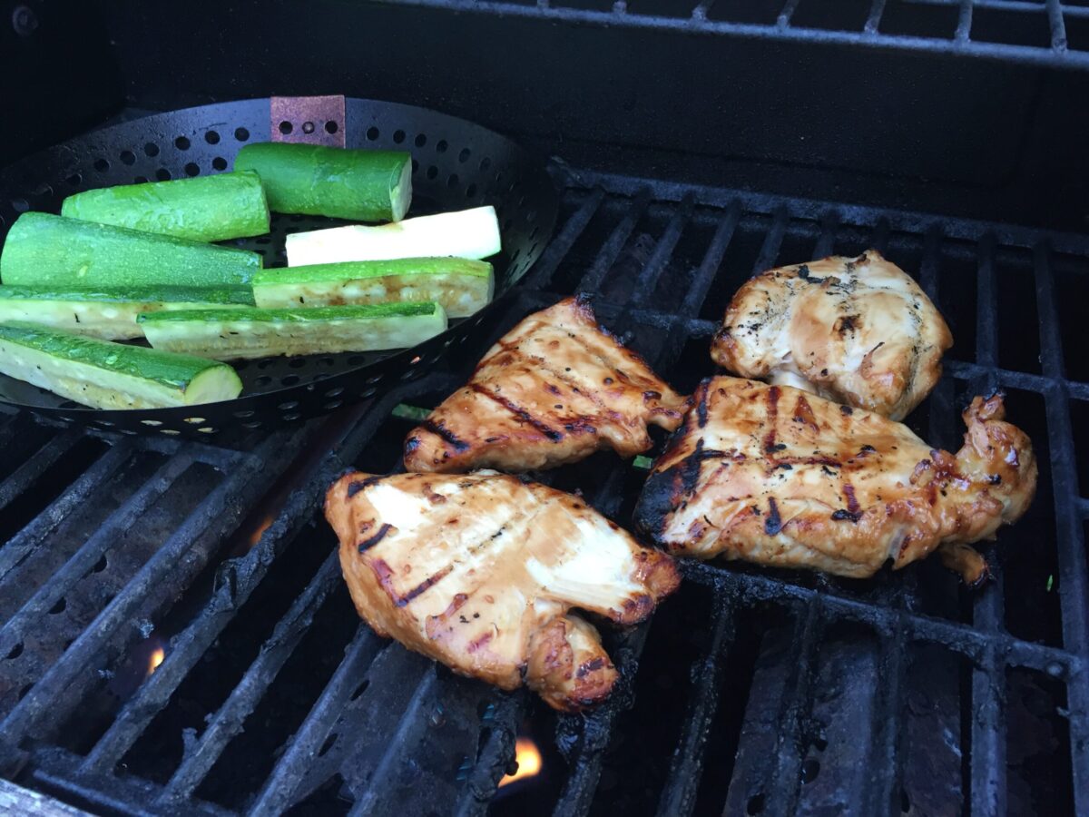 If you’ve ever marinaded chicken before grilling it, you’ll notice that the outer bits of meat take on the color of the marinade and, the longer you marinate it, the deeper into the breast tissue it penetrates. If you cut up the chicken into pieces before marinating, the marinade doesn’t need as much time to penetrate.