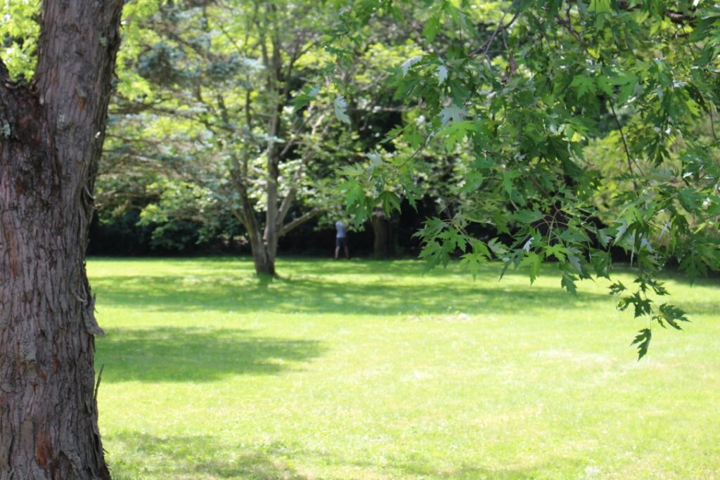 In 1870, Frank Scott published a book entitled, “The Art of Beautifying Suburban Home Grounds of Small Extent;” the opening quote by Lowell, states “The landscape, forever consoling and kind, pours her wine and her oil on the smarts of the mind.” The book, all 702 pages, is dedicated to helping suburban homeowners “realize beautiful home surroundings on small grounds… with minimal expense and care.” He also remarks that “all civilization is marked by the touch of the arts which have subjugated the ruder elements of human and vegetable nature to mould and rearrange them….Not to reproduce the rudeness of Nature, but to adapt her to our civilized necessities, to idealize and improve, to condense and appropriate her beauties…” In this book, then, was born the idea of the “velvety lawn flecked with sunlight and the shadow of common trees.” The book pontificates about how to establish a suburban lawn and yard, and how the participation in this “decorative gardening” develops a sense of community with neighbors since the expanses of land are modest and not estate-sized. Coincidentally (or not?) a couple years before the book was published, the lawn mower was invented, soon followed by the invention of a water sprinkler. A light weight push mower, invented by Elwood McGuire, was exhibited at the 1893 Chicago World’s Fair. Mowing and lawn care were now within reach of homeowners who didn’t have a dedicated groundskeeping staff.